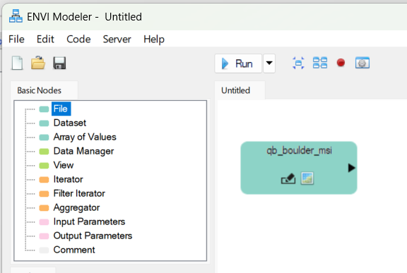 Open the ENVI Modeler window with your simple model from above Display > ENVI Modeler. 2. 2