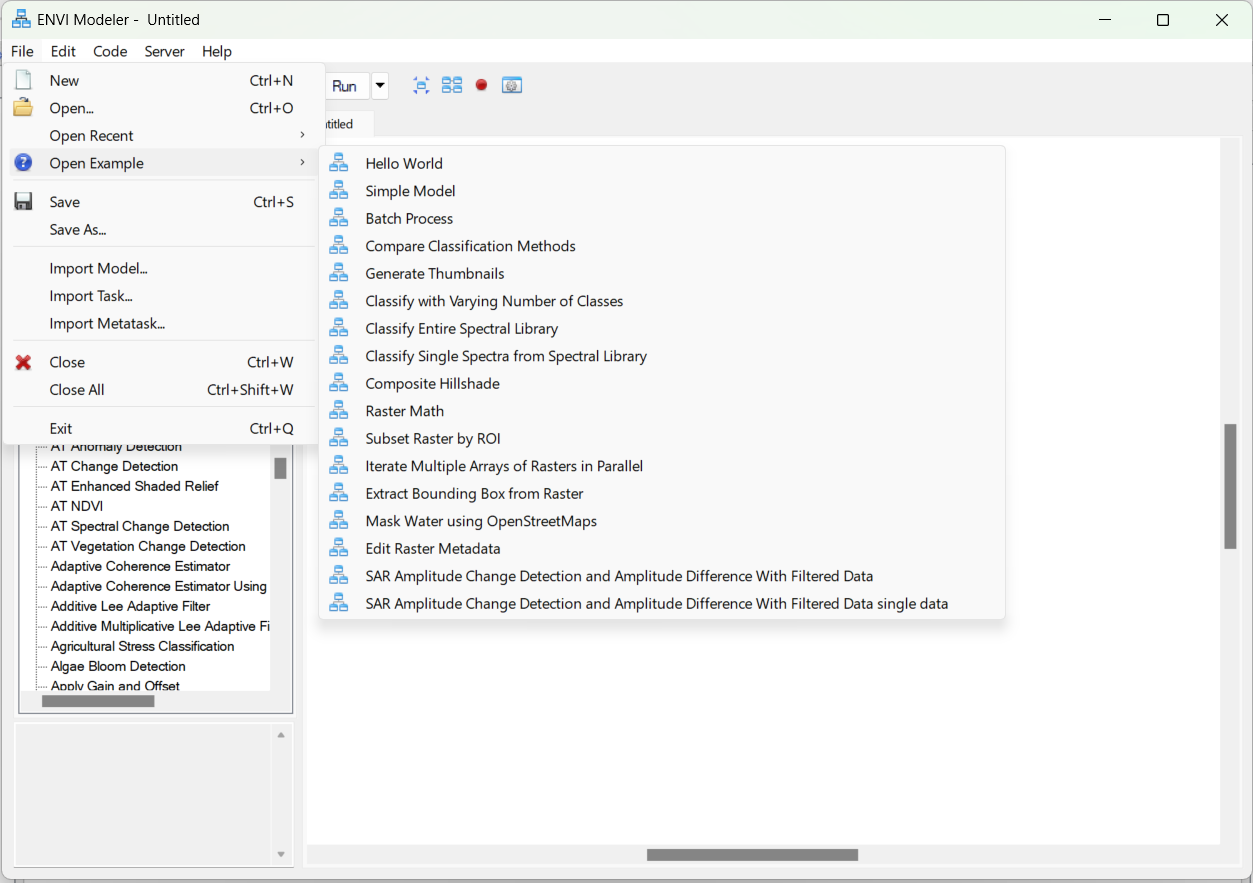 Select File > Open Example, to expand the list of example models that ship with ENVI 2. 2