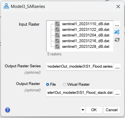 Click the ellipsis next to Output Raster Series to select a directory and file name, for instance S1_Flood.series, for the output series. The appropriate extension for a series file is .series. 4. 9