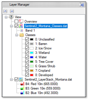 In the Layer Manager, select Sentinel2_Montana_Classes.dat to make it the active layer.