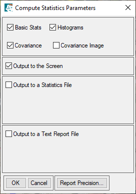 - 启用 直方图 和 协方差 选项。基本统计 和 输出到屏幕 选项默认已启用。