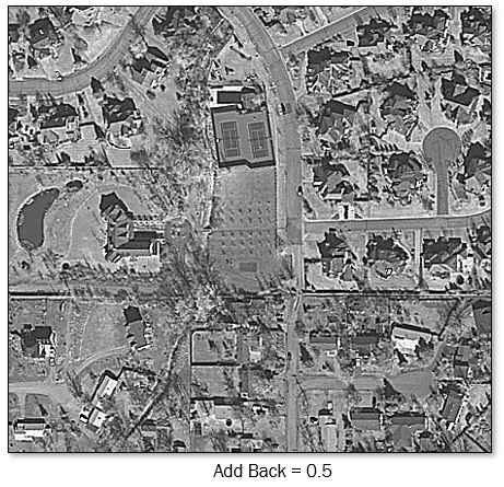 Enter an Add Back value of 0.5. This produces a blended image that displays 50% of the original (unfiltered) image and 50% of the high pass filtered image.