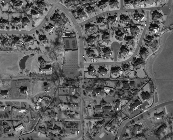 Select the file qb_boulder_pan and click Open. The image is added to the Layer Manager and displayed in the Image window. This is a QuickBird panchromatic image of Boulder, Colorado. 4. 4