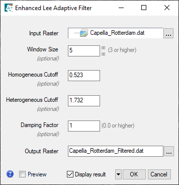In the Toolbox, double-click Enhanced Lee Filter. The Enhanced Lee Adaptive Filter dialog appears. 2. 2