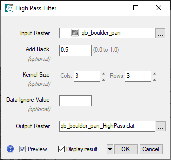 In the Output Raster field, enter a file name of qb_boulder_pan_HighPass.dat.