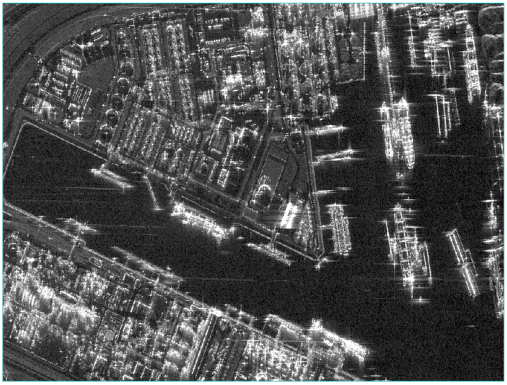 SAR images suffer from speckle noise caused by the backscattering of radar signals in multiple directions within a resolution cell. This can give SAR images a salt-and-pepper appearance that makes visual interpretation difficult.