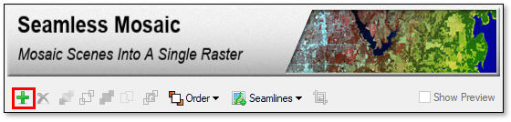 In the Toolbox, expand the Mosaicking folder and double-click the SeamlessMosaic tool. The Seamless Mosaic workflow appears. 2. 2
