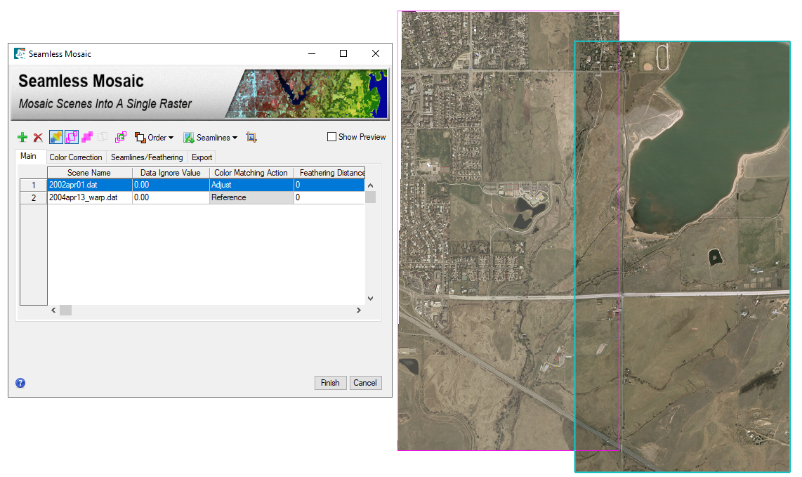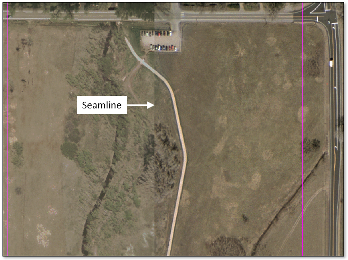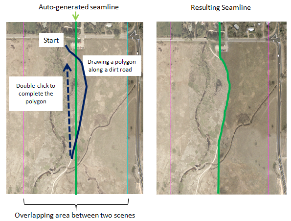 A seamline is the line along which overlapping scenes will be mosaicked. They are helpful when overlapping areas have significant differences in features. ENVI uses a geometry-based method to automatically generate seamlines that you can further edit.