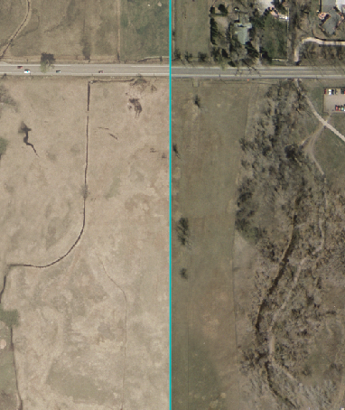 Create a mosaic from two U.S. Geological Survey high-resolution orthophotos from different dates. * •