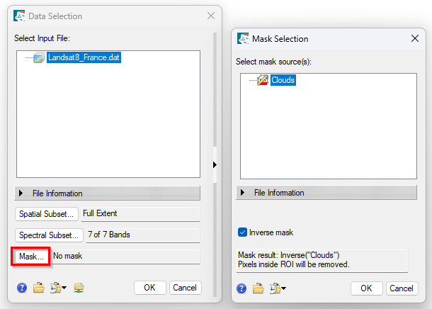Select Landsat8_France.dat and click the Maskbutton near the bottom. The Mask Selection dialog appears. 3. 3