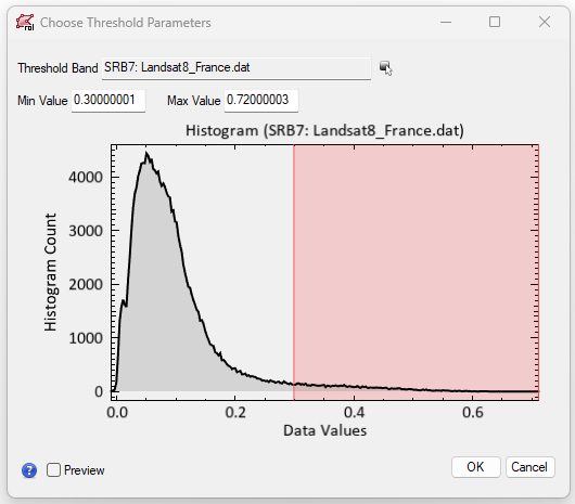 In the Data Selection dialog, select the "SRB7" band and click OK. The Choose Threshold Parameters dialog appears.