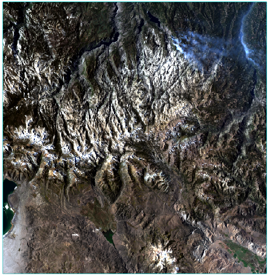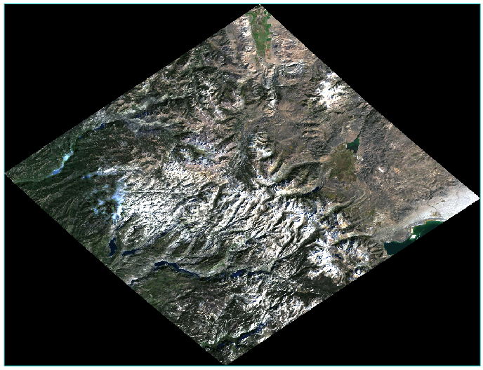 Click OK to georeference the reflectance image. Processing takes several minutes. When it is finished, the georeferenced image is added to the Layer Manager and displayed in the Image window. The black pixels around the image have values of 0.