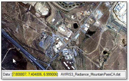 Go to the location where you saved the sample data, and select the file AVIRIS3_Radiance_MountainPassCA.dat. 3. 3