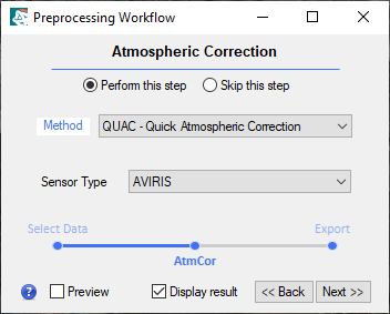 QUAC and other atmospheric correction options are available as standalone tools and are also included in the Preprocessing Workflow. For this exercise, you will use the workflow.