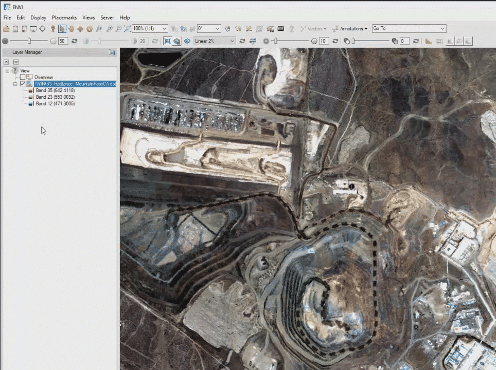 In the Layer Manager, right-click on AVIRIS3_Radiance_MountainPassCA.dat and click Remove.