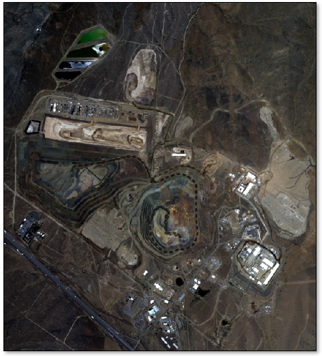 Click Open. The image is added to the Layer Manager and displayed in the Image window. This is an AVIRIS-3 hyperspectral image of the Mountain Pass Mine in California.