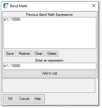 Click the Add to List button. The expression is added to the Previous Band Math Expressions field.