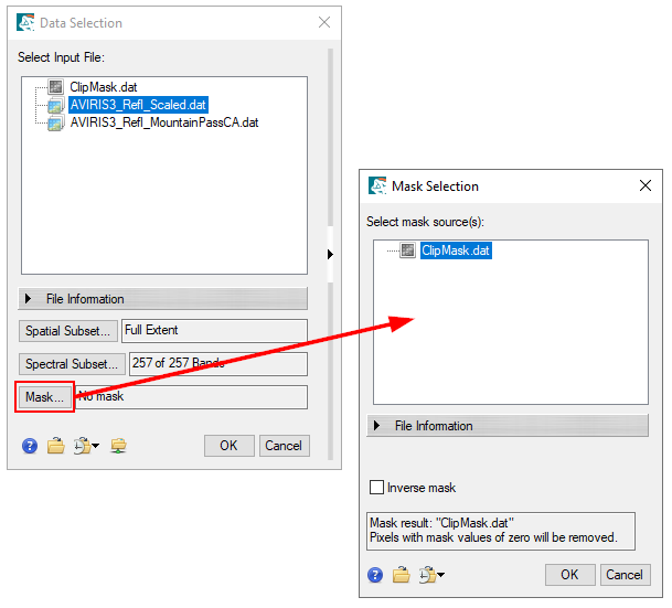In the following steps, you will create a copy of the AVIRIS3_Refl_Scaled.dat image with the mask applied.