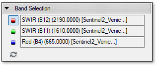 Click SWIR (B12) to assign that band to the red color channel. A red icon appears next to the band. 3. 5