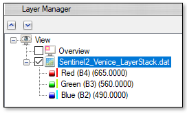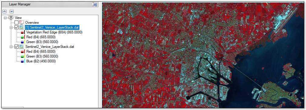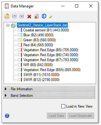 In the Data Manager, right-click on Sentinel2_Venice_LayerStack.dat and select Load CIR.