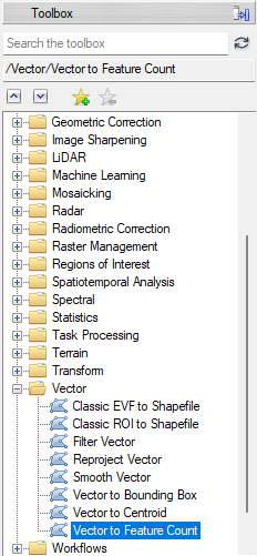 In the Toolbox, expand the Vector folder and double-click the Vector to Feature Count tool.