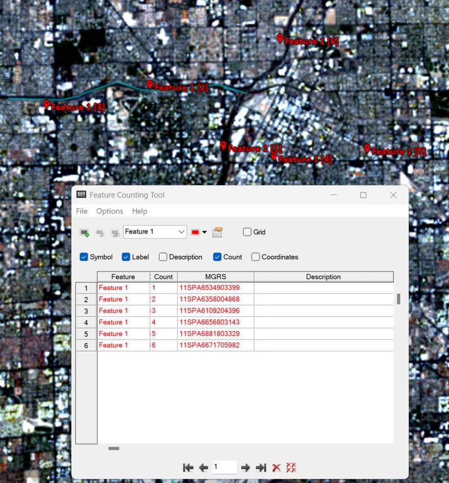 ENVI creates a feature counting layer and displays it over the input raster. It opens the Feature Counting Tool so that you can view the attributes of the feature counting layer.