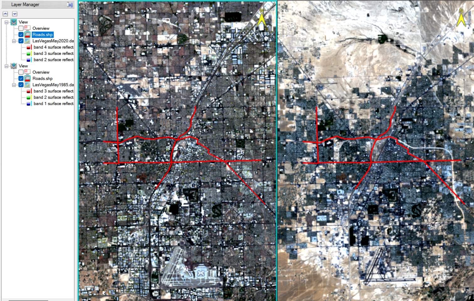 Go to the location where you saved the sample data, and select the file LasVegasMay2020.dat. Click Open. The image is added to the Layer Manager and displayed in the Image window.