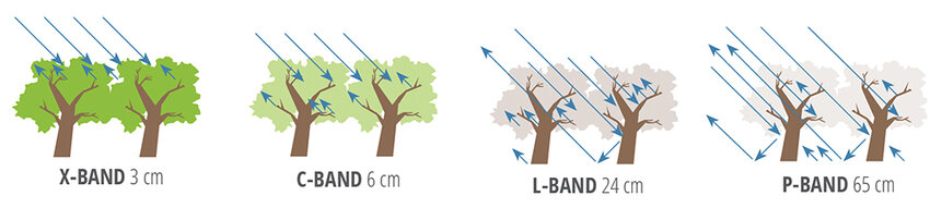 SAR penetration capabilities by wavelenth. Image credit: NASA Earthdata (2020).
