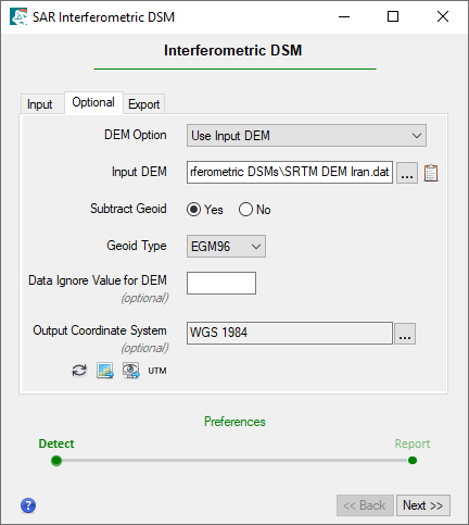 Double-click the SAR Interferometric DSM tool. The SAR Interferometric DSM dialog appears.