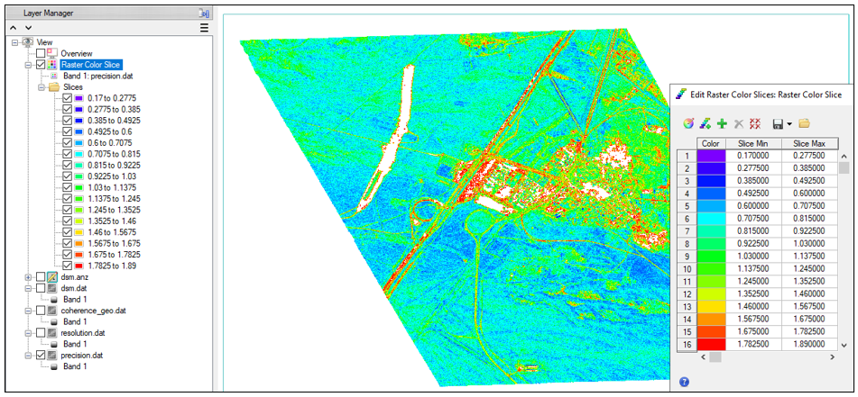 在 Layer Manager 中,右键点击 precision.dat 并选择 New Raster Color Slice。出现 Data Selection 对话框。 - 8