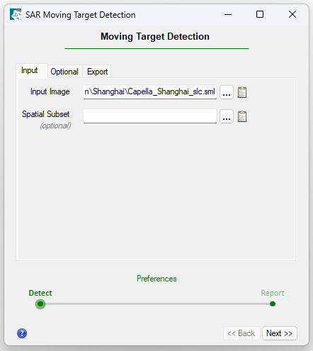 Double-click SAR Moving Target Detection. The SAR Moving Target Detection dialog appears. The Input tab is active. - 3