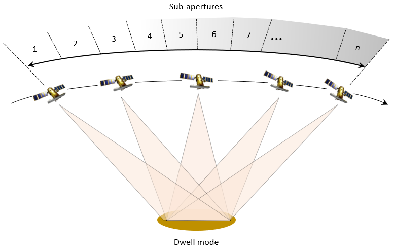 Dynamic aperture images are best created from sensors that operate in dwell mode with longer dwell times such as 10 to 30 seconds. However, satisfactory results can also be obtained in spotlight mode with at least 5 seconds of dwell time. Be aware that the spatial resolution of a dynamic aperture image degrades with an increasing number of sub apertures.