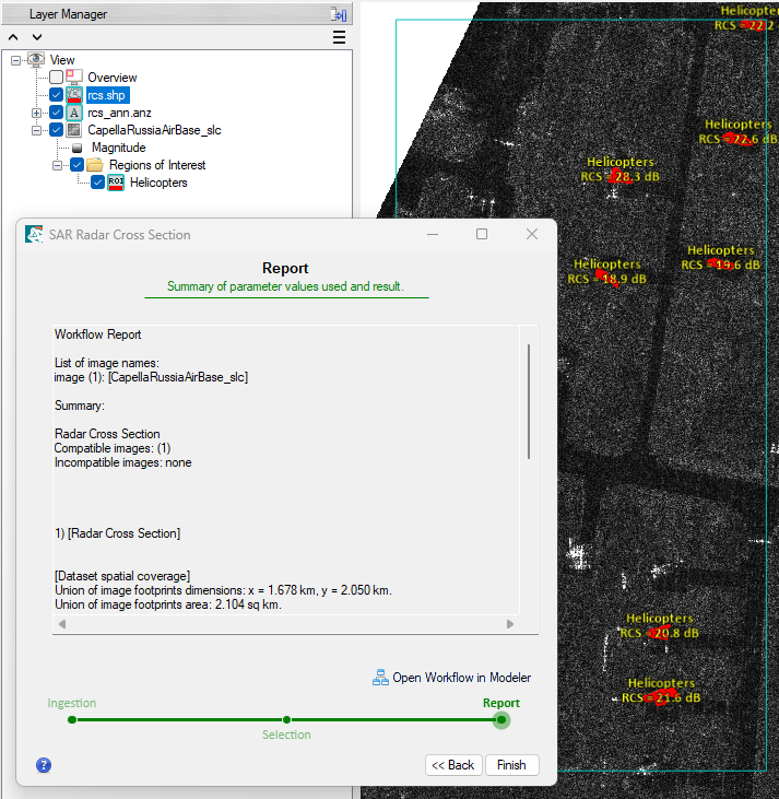 Click the Finish button to close the SAR Radar Cross Section tool. - 3