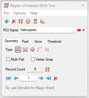 In the ROI Tool, change the default name of the ROI from "ROI #1" to Helicopters. Press the Enter key to accept the name change.