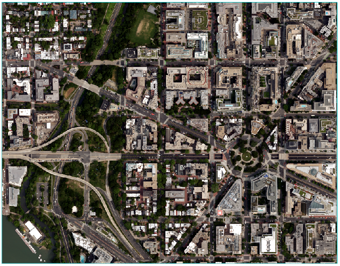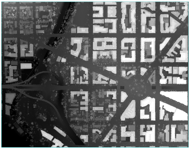 The DSM covers a small area in Washington, D.C. The source files are available from the OpenDC Data Catalog(opens in a new tab). Pixel values represent height (in meters) above sea level.