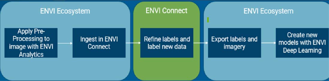 图1展示了用于创建标注数据和深度学习目标检测模型的端到端ENVI生态系统方法。