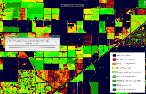 我的下一个重点是能够为时空分析构建一系列图像(称为栅格序列),然后逐步查看图像。在下图中,已通过对空客防务与航天公司提供的 9 幅图像运行优化土壤调整植被指数创建了一个栅格序列。使用序列管理器,我们可以快速向前或向后浏览我们的图像序列,以了解我们场景中任何给定像素随时间变化的植被健康状况。您还可以快速标注图像采集的日期和时间,并将您的时间序列导出为视频。在下面的示例中,我选择从图像处理结果创建栅格序列,但我们同样可以很容易地从原始图像创建时间序列。