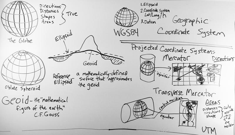 A brief discussion about a few of the basic terms and elements of geodesy, cartography and coordinate systems