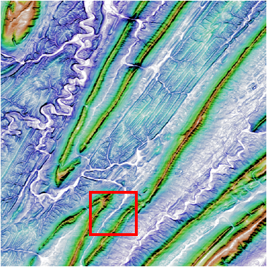 Blended slope image at full (1:1) resolution for the area indicated in the red box.