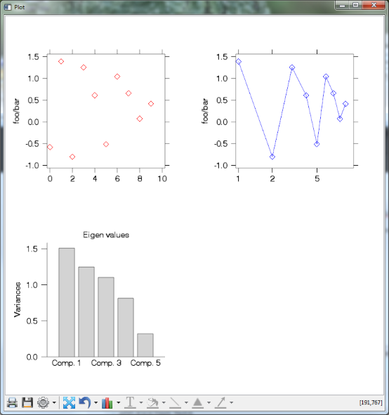 !null = graphics.plot(x, y, ylab = "foo/bar", col = "red")