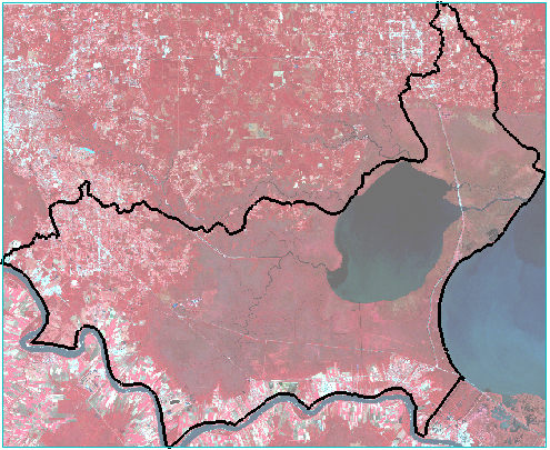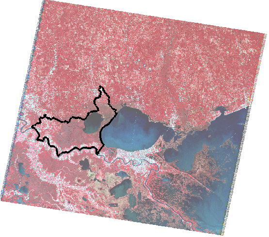 This example uses a Landsat 5 TM image and a polygon shapefile of the Lake Maurepas watershed boundary in the Mississippi River coastal delta region of Louisiana.