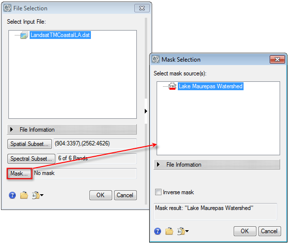 For more information on subsetting options and creating masks, please refer to the ENVI Help.