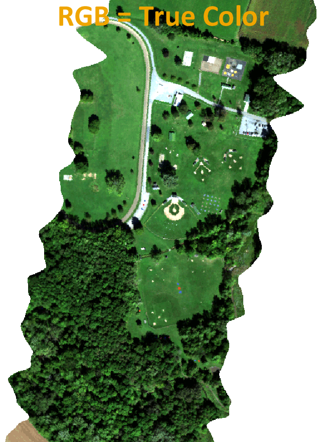 In the image animation below you will see the True Color image followed by a RGB composite image comprised of the processing results from three different spectral mapping algorithms: