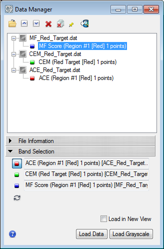 The steps to follow to create a new RGB layer consisting of three bands from different files are described in greater detail within the "Manage Raster Layers" topic of the ENVI software documentation help system. The same restrictions apply as before where the image bands must all have the same spatial size in terms of number of pixels in the X and Y dimensions ("Columns x Rows" or "Samples x Lines" depending on your preferred terminology) in order to display together as a single RGB color image. In most scenarios it also helps if the raster datasets are coregistered with the same geospatial extent and pixel size but this actually is not a requirement enforced by the ENVI software.
