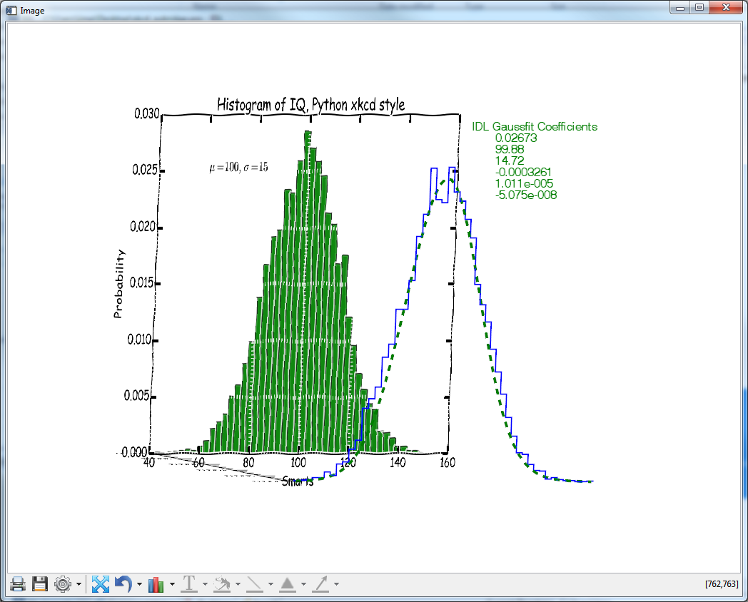 IDL> Python.Run("plt.text(60, .025, r'$\mu=100,\ \sigma=15$')")