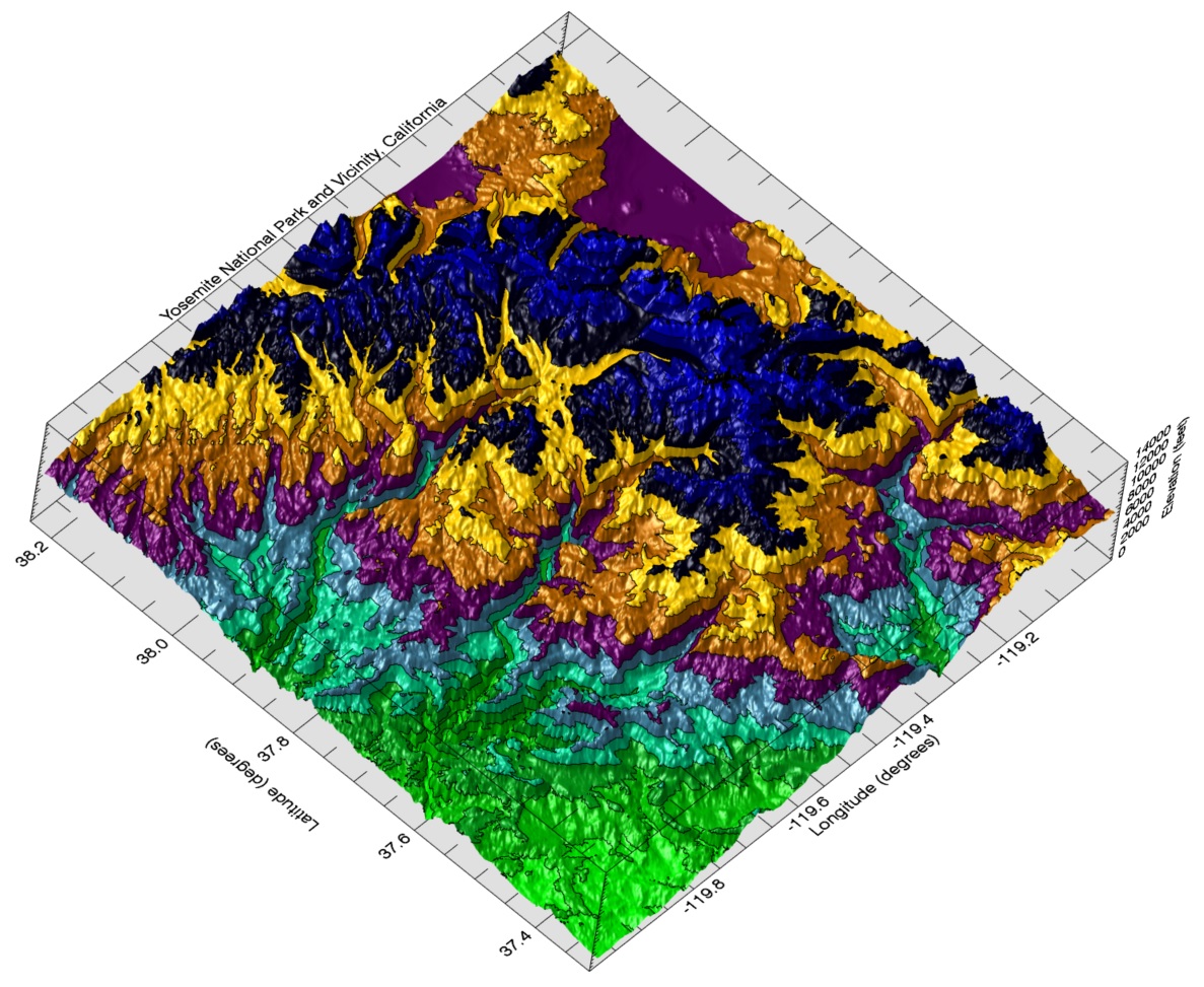 There are a lot of pretty cool things that can be done with the three-dimensional functions available in ENVI + IDL. For instance, in this example I plotted elevation values using a USGS DEM, but values that represent something completely different than elevation could have been plotted along the z-axis. This could make for some pretty cool and informative visualizations.