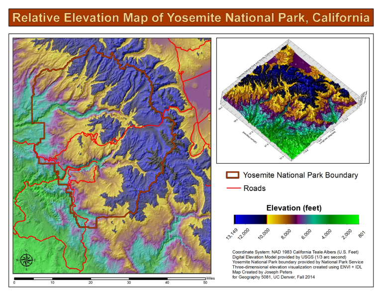 I also decided to make a map of my area using ENVI and ArcMap interoperability. I then inserted an image of my three-dimensional plot into the map. I think it gives a unique view of the scene. You can check out my map below. If you would like to see more examples of what can be done with the SURFACE and CONTOUR functions, check out our Documentation Center for more Graphics Examples.