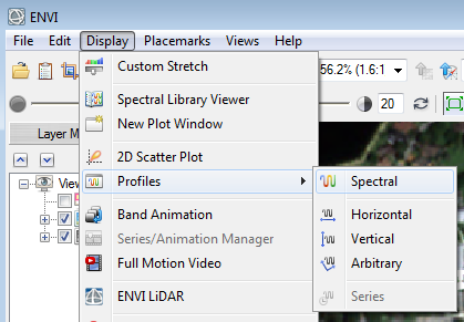 我们可以使用光谱剖面查看器探索此图像中特征向量的值。点击图像上的任意位置将显示与该像素位置相关联的特征向量。Shift + 单击可以在图表中添加多个位置,通过选项菜单和曲线属性可以添加图例。