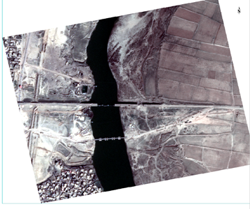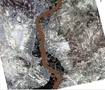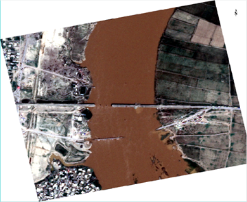 Below are two separate examples of how ENVI was able to utilize Deimos-2 high-resolution imagery in quick turnaround environments to get accurate answers following a disaster. The first example below is of a flood of the Mosul dam in 2017. As you can see from the before and after photos, there was a large amount of flood water and debris that expanded the Snake River over a period of time, displacing residents and causing millions of dollars in damages.