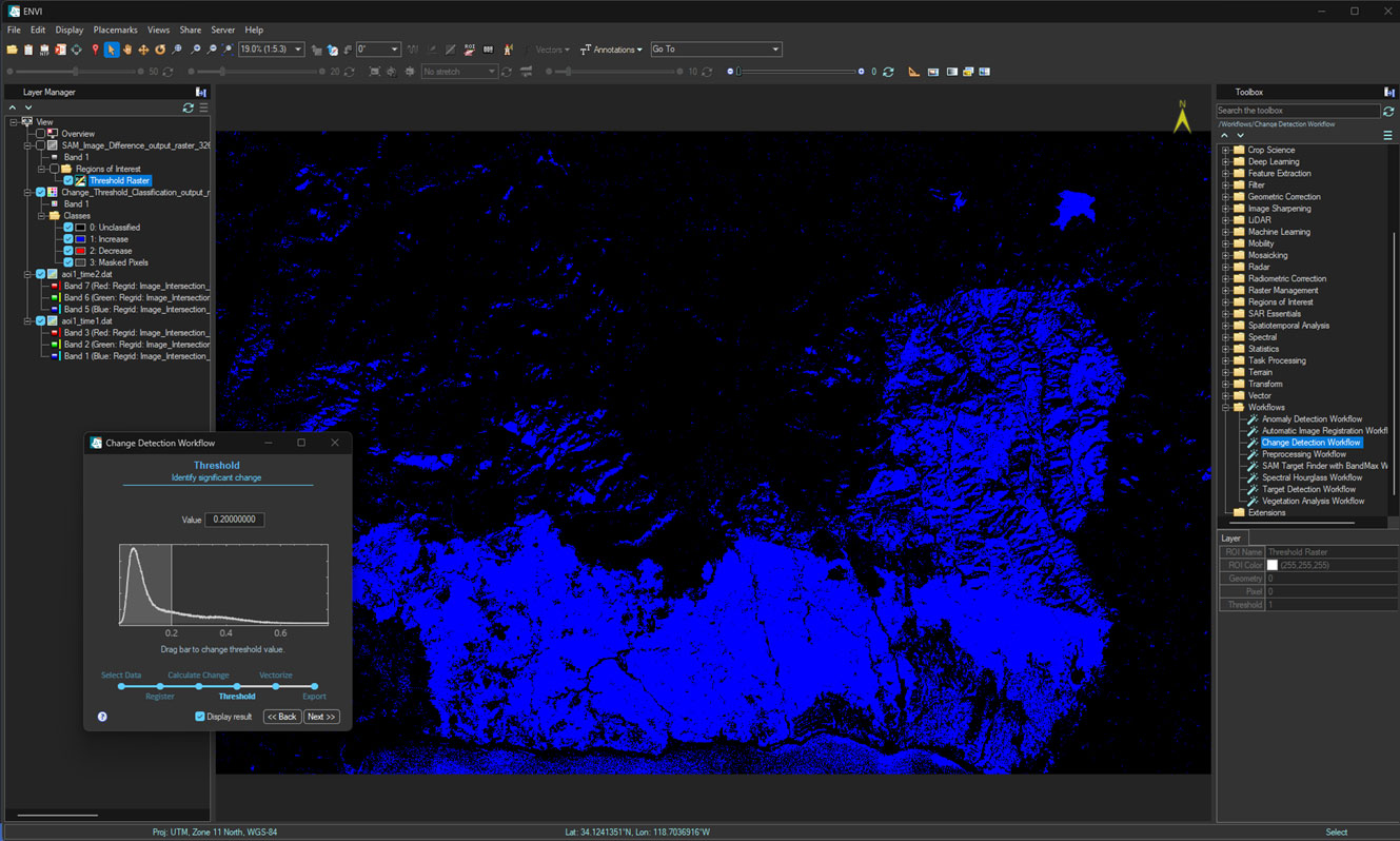 As an example of what these interactive workflows look like, here’s the thresholding step of the Change Detection workflow